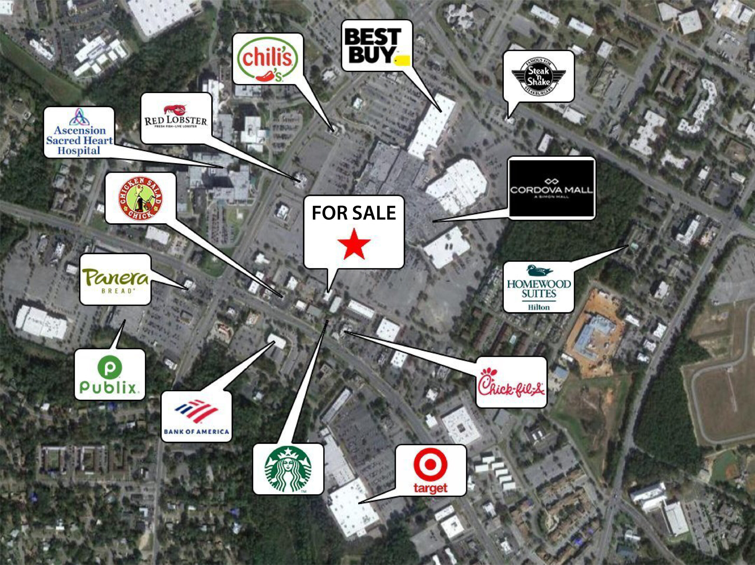 Located across from Cordova Mall (the largest shopping center on NW Gulf Coast) & Sacred Heart Hospital